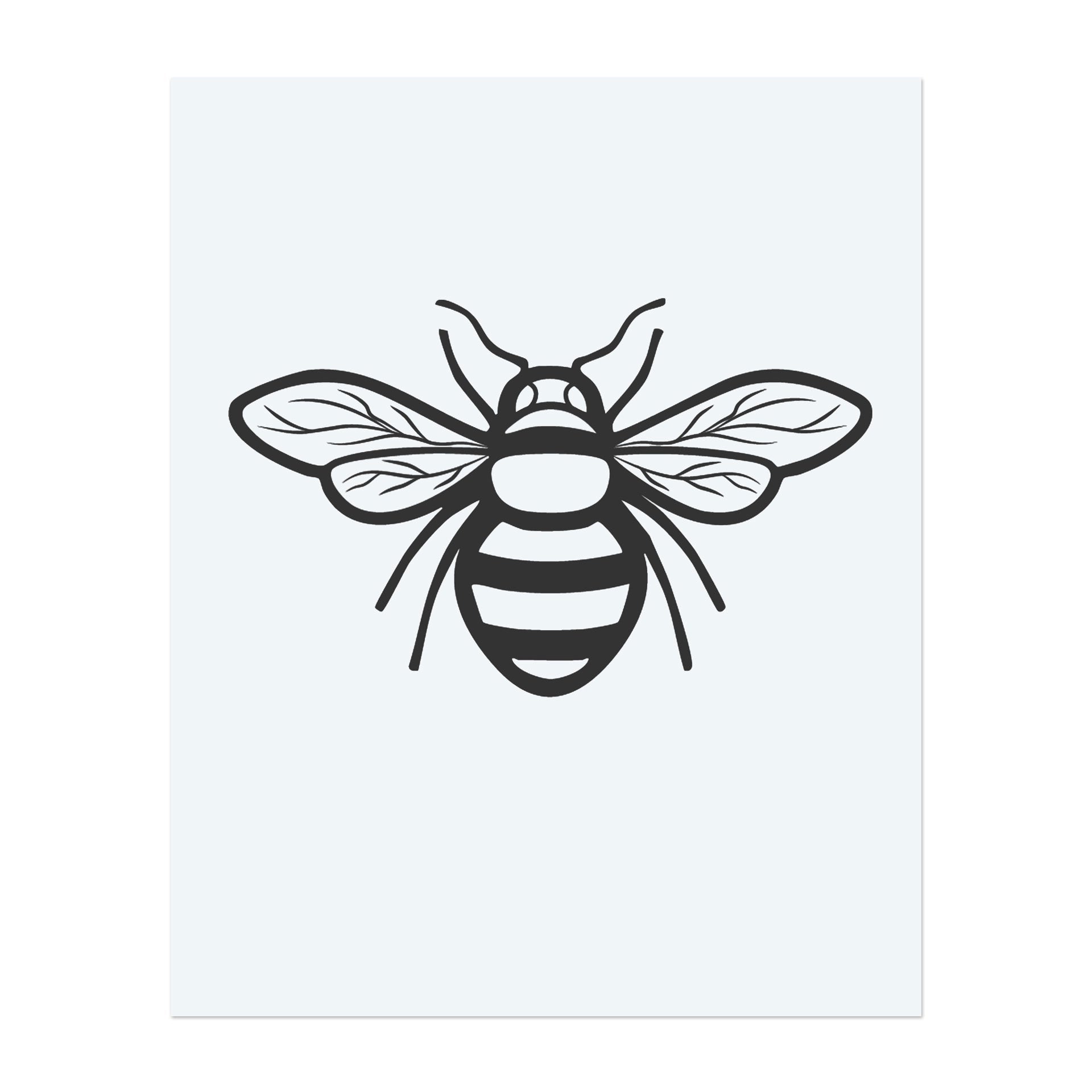 Un sorprendente disegno di un'ape, con linee nere, ali dettagliate e strisce audaci. Questo tatuaggio combina eleganza naturale e significato simbolico, ideale per rappresentare il duro lavoro, la comunità o la forza personale in uno stile chiaro e grafico.