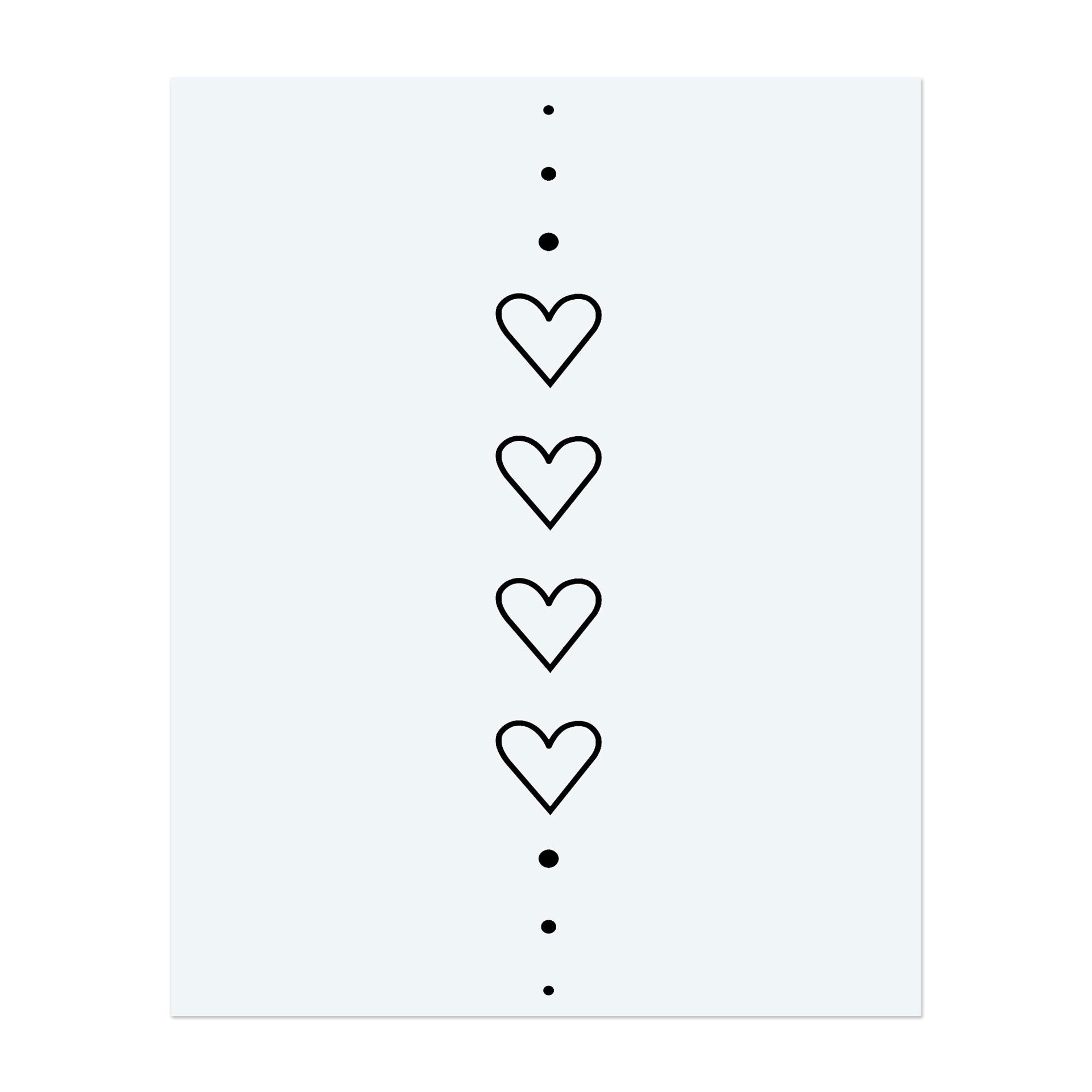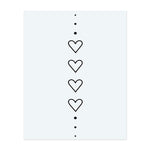 Un design minimalista composto da quattro cuori equidistanti, incorniciati da delicati punti. L'orientamento verticale conferisce al motivo una struttura pulita e moderna, un simbolo discreto di amore, connessione ed equilibrio.