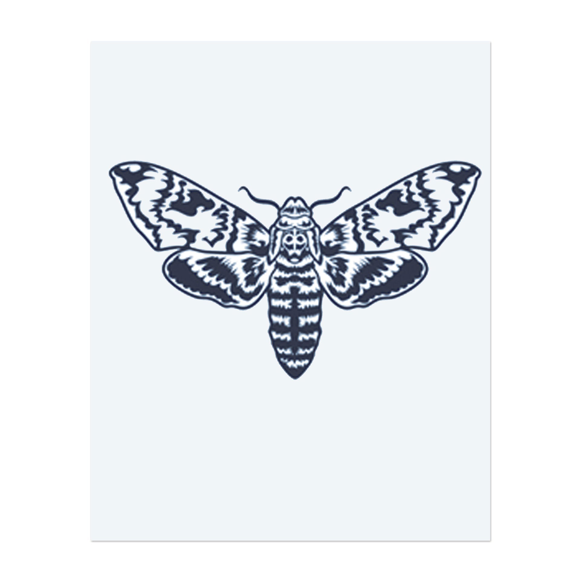 Una falena dettagliata con intricati motivi sulle ali. Simboleggia la trasformazione, il mistero o il legame con la natura. Un design sorprendente e simbolico.