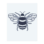 Un tatuaggio minimalista di un'ape con linee semplici. L'ape è raffigurata in volo, con strisce decise e ali dettagliate, che la rendono unica.