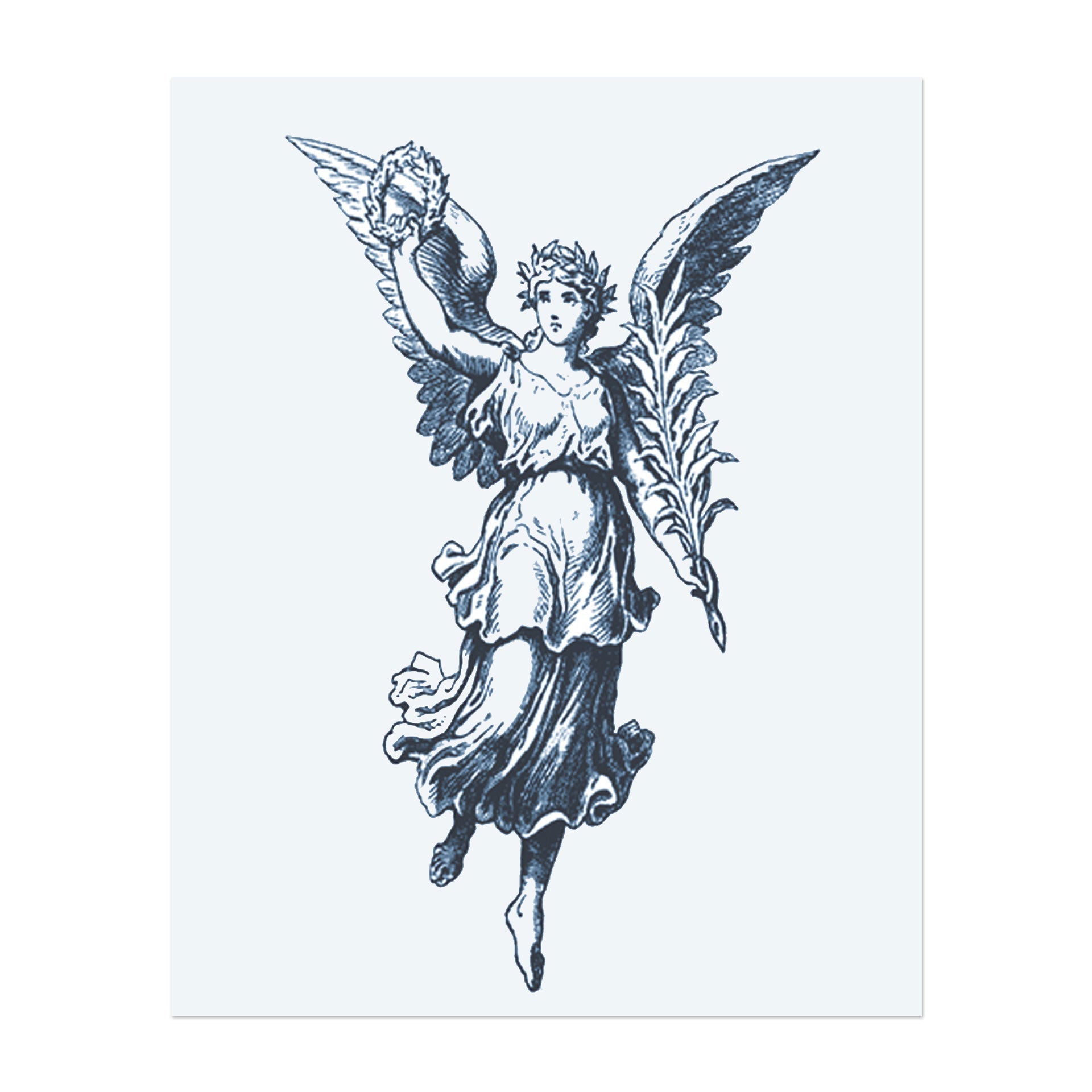 Un grazioso angelo che fluttua con le ali spiegate e tiene in mano un oggetto simbolico. Questo tatuaggio rappresenta purezza, protezione e guida divina ed è una splendida scelta per chi si sente connesso a poteri superiori e forza spirituale.