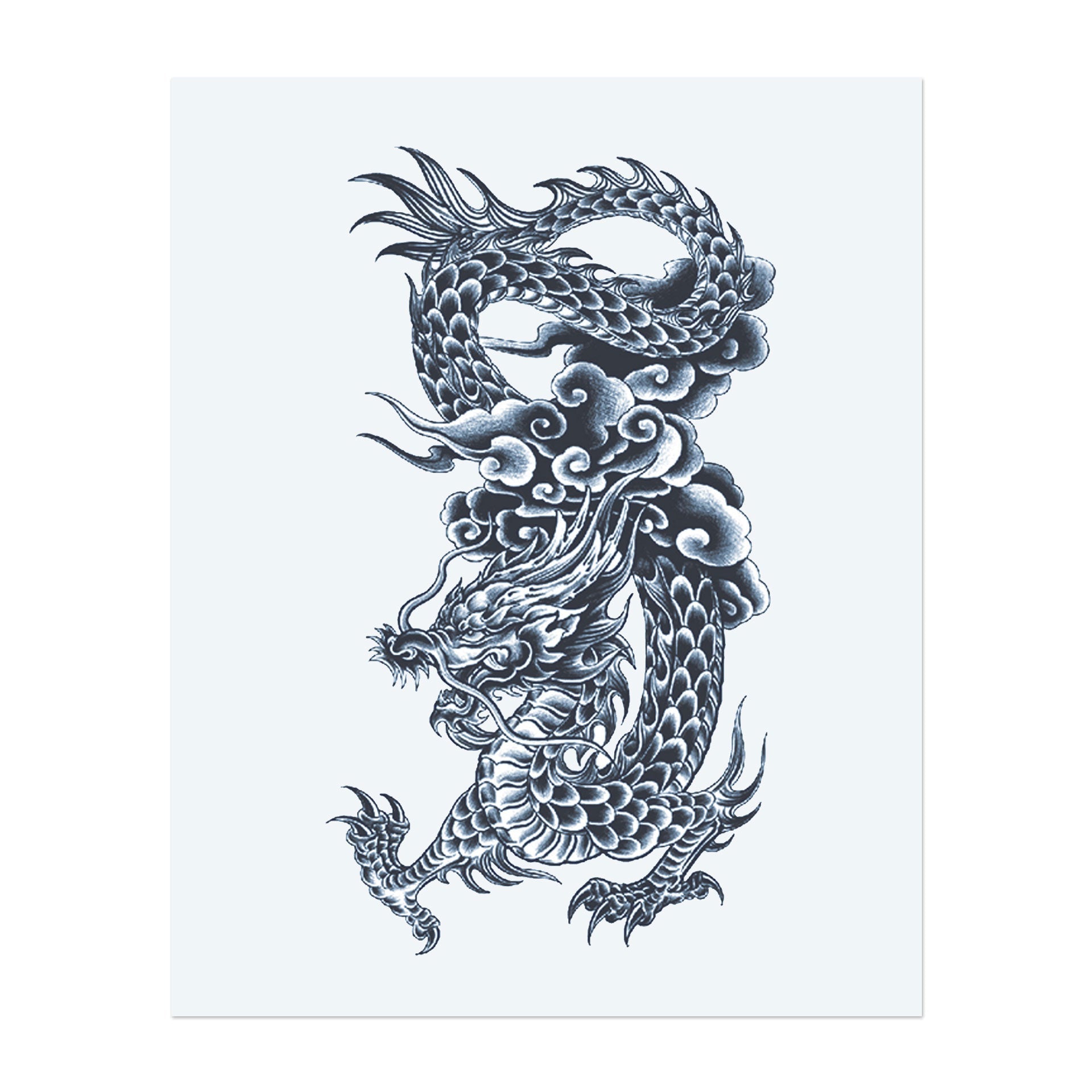 Un possente drago, che si snoda tra le nuvole, con scaglie e artigli affilati. Questo tatuaggio simboleggia forza, saggezza e spirito d'avventura, perfetto per chi abbraccia il potere selvaggio e il misticismo.