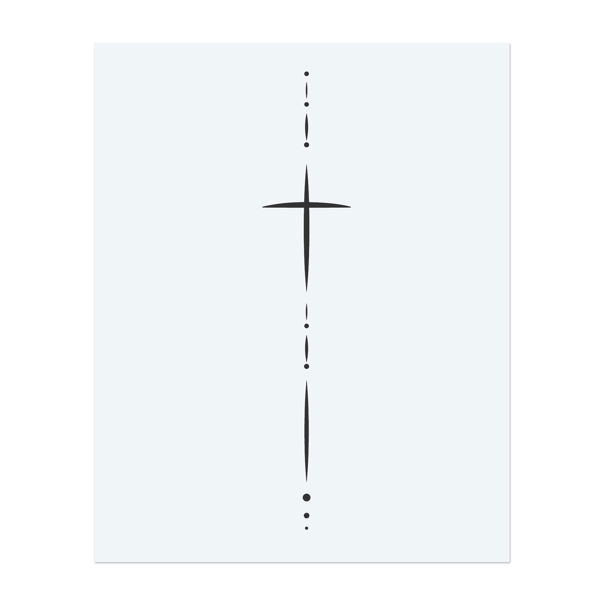 Una croce stilizzata, incastonata in una linea verticale di punti ed elementi delicati. Il suo design minimalista è allo stesso tempo moderno e spirituale: un sottile simbolo di fede, allineamento ed equilibrio interiore.