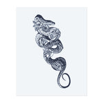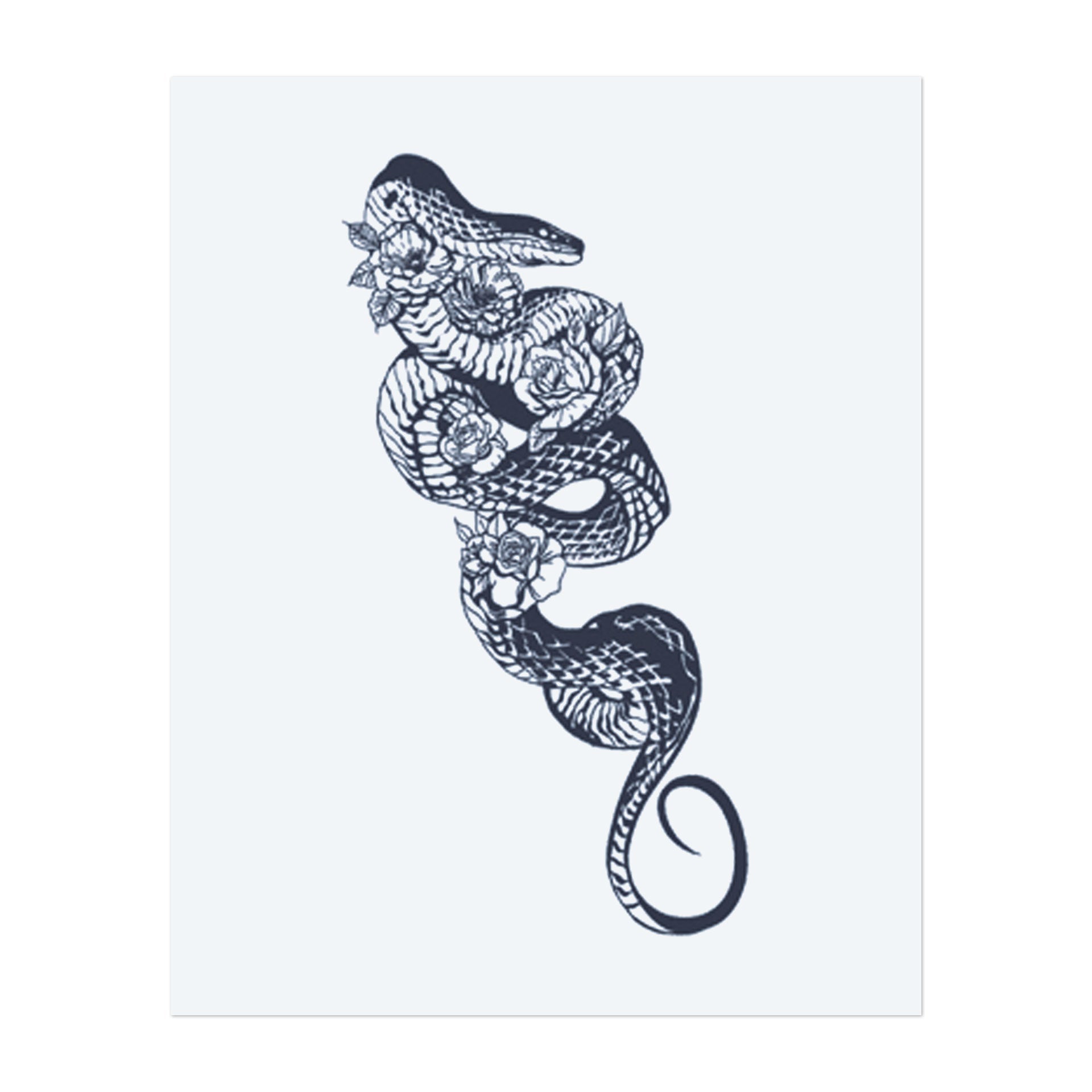 Un serpente dettagliato avvolto in spire con disegni intricati. Questo tatuaggio simboleggia saggezza, trasformazione e protezione, perfetto per chi apprezza la crescita personale e la forza attraverso il cambiamento.