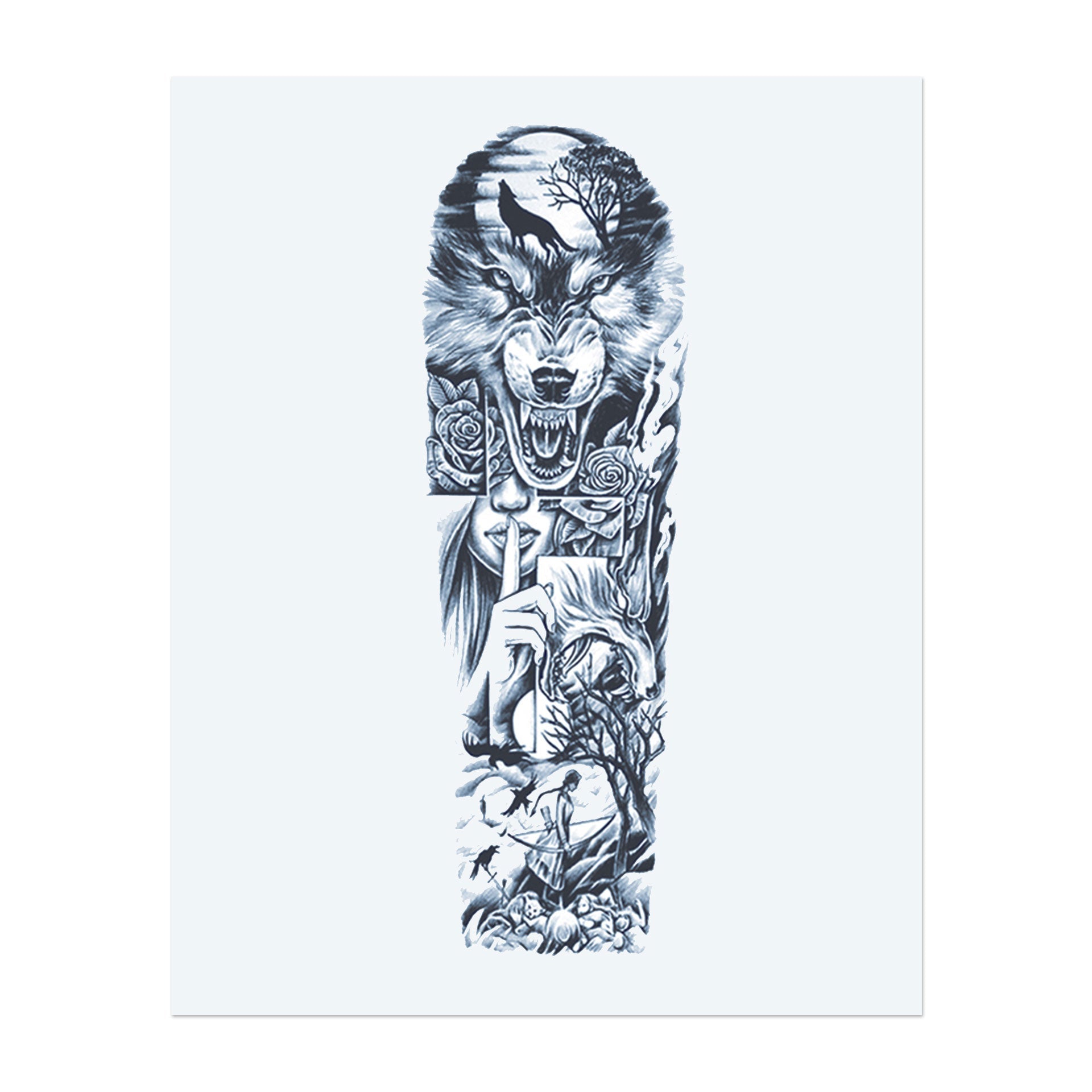 Questa copertina raffigura un lupo terrificante, una donna misteriosa con un dito sulle labbra e paesaggi spaventosi. Simboleggia la forza, il silenzio e i segreti nascosti della natura, combinando potenza e mistero in un design accattivante.