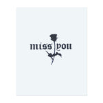 Un disegno sentimentale con le parole "Mi manchi" abbinate a una delicata rosa. Evoca amore e perdita ed esprime nostalgia e ricordi in un font bello ed elegante.