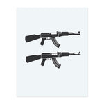 La silhouette elegante e minimalista di due fucili d'assalto in nero puro. Questo tatuaggio temporaneo è una dichiarazione audace e controversa, che enfatizza la potenza pura e le immagini forti con un chiaro effetto grafico.