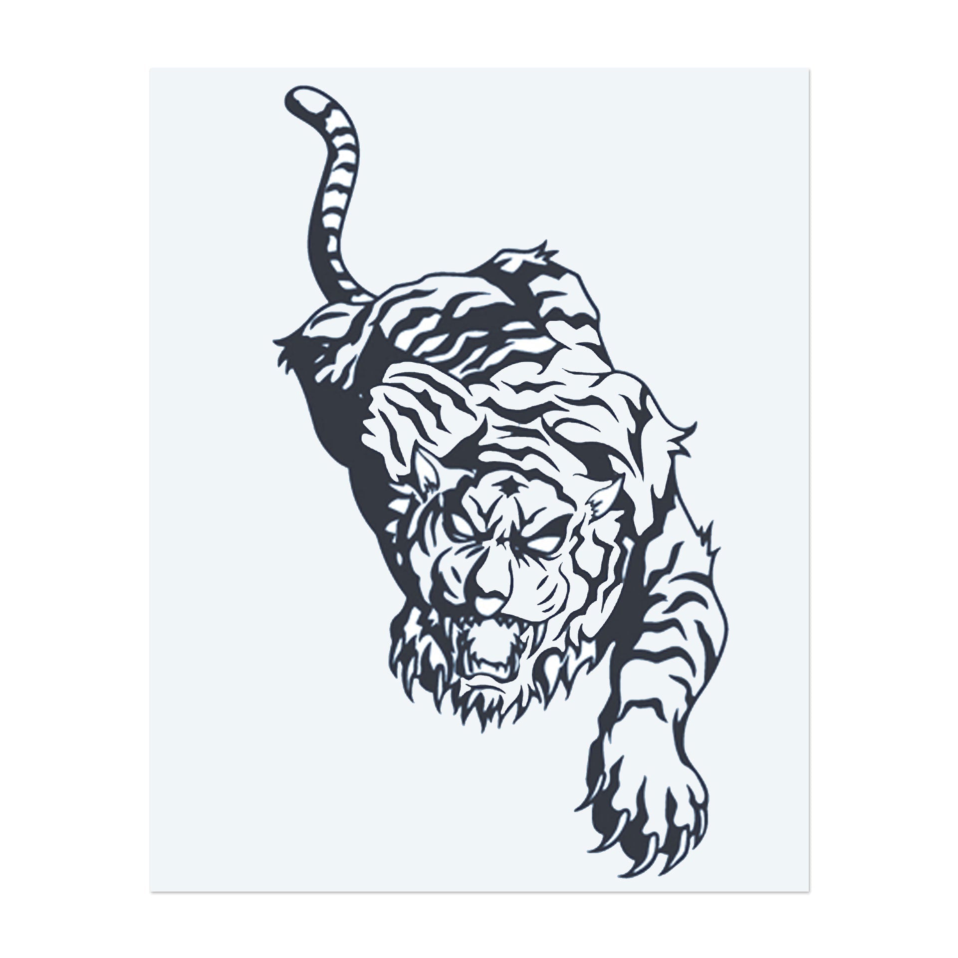 Una potente tigre accovacciata, pronta a colpire. Questo tatuaggio simboleggia furtività, forza e concentrazione. Perfetto per chi apprezza l'agilità, il coraggio e l'arte dell'azione precisa, come la maestosa tigre.