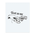 Un design sorprendente e simbolico con lettere gotiche, una mano tesa e un serpente pronto ad attaccare. Questa moneta trasmette un potente messaggio di cautela e tradimento con un impatto visivo drammatico.