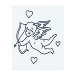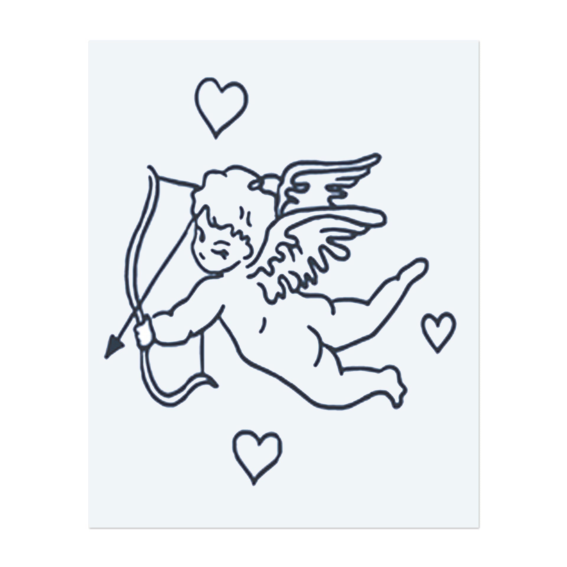 Un dolce e angelico Cupido che vola nell'aria, pronto a scoccare una freccia, con dei cuori che gli fluttuano intorno. Questo tatuaggio è un dolce simbolo di amore e romanticismo.