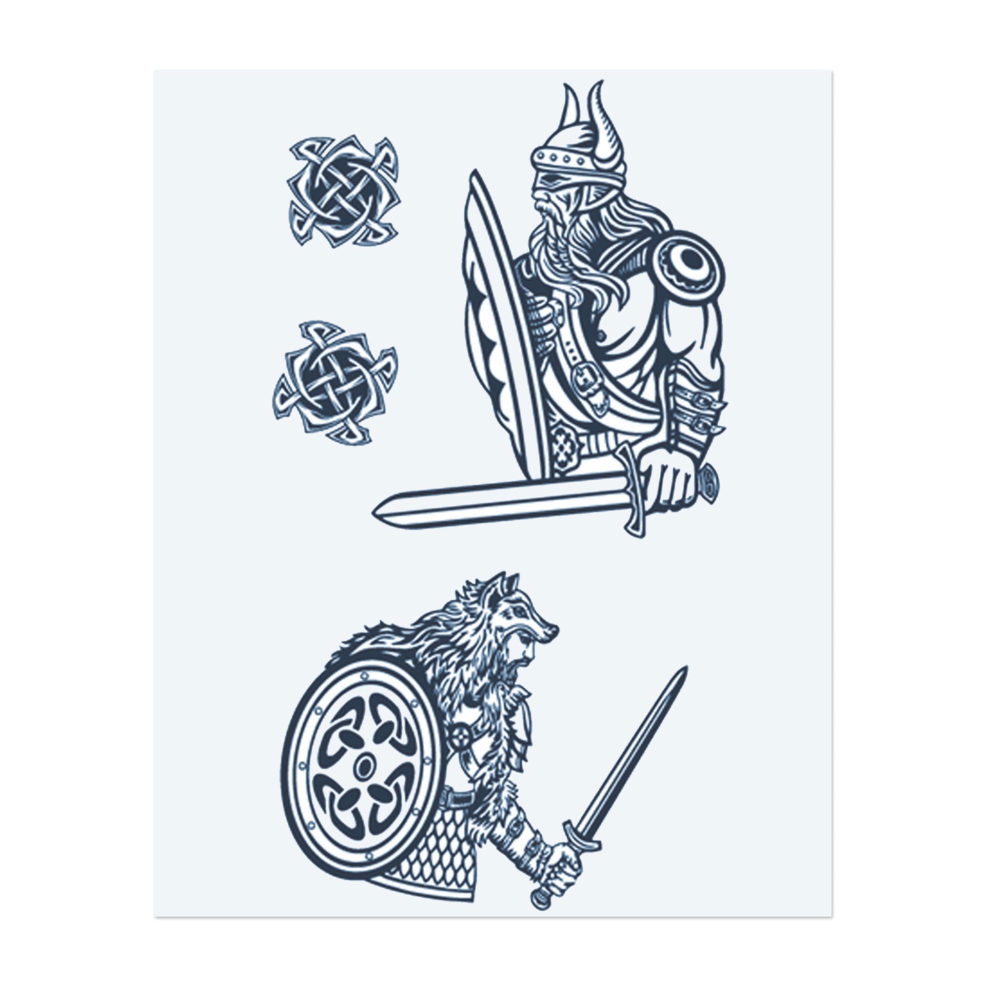 Un coraggioso vichingo in armatura con scudo e spada, e un temibile orso con uno scudo. Questi disegni rappresentano forza, coraggio e spirito guerriero. Perfetti per chi apprezza la resilienza, la protezione e la via del guerriero.