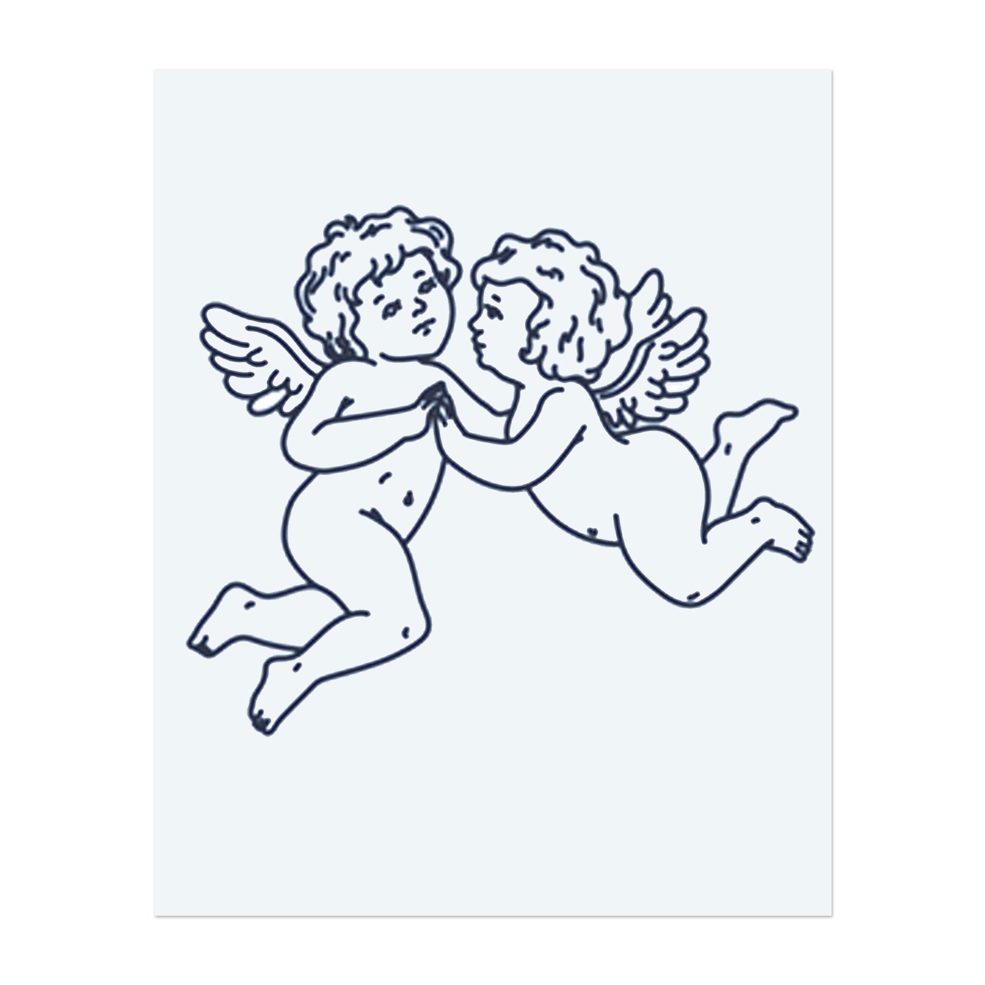 Due cherubini che si abbracciano. Simboleggia l'amore, l'innocenza o un classico simbolo di affetto.