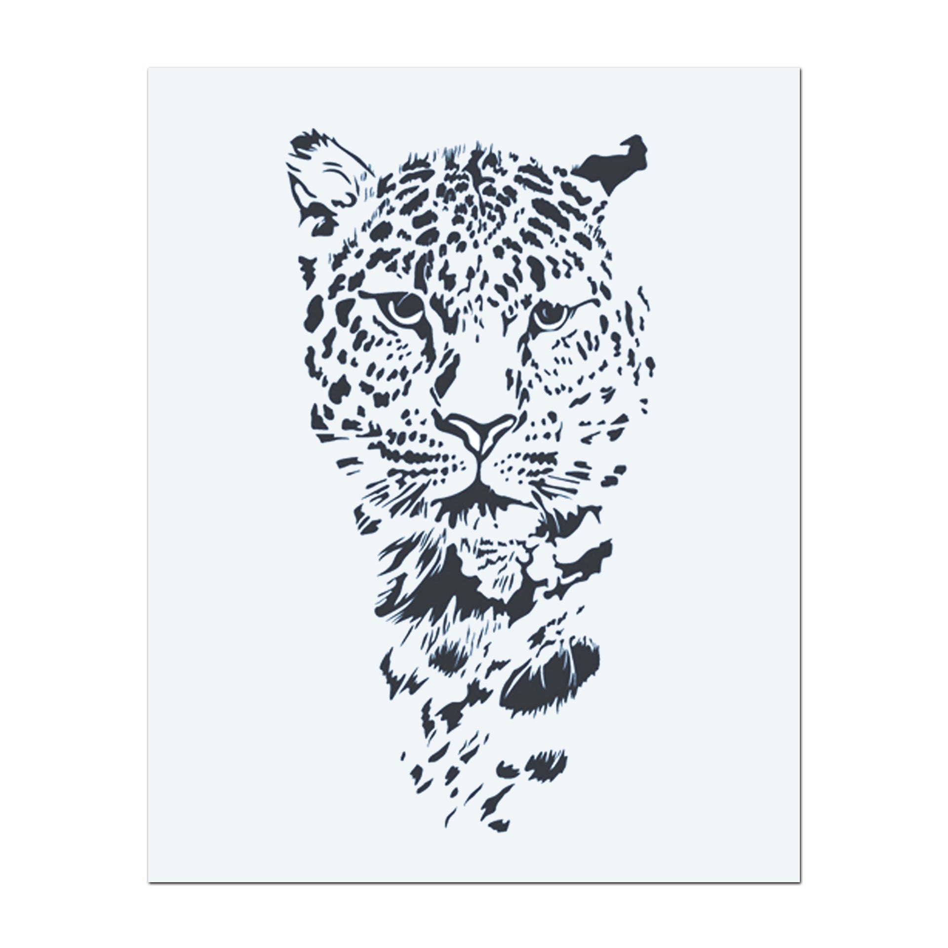 Un volto di leopardo sereno, con macchie sbiadite in uno stile pulito e minimalista. Questo tatuaggio incarna forza silenziosa e grazia, ricordandoti di rimanere concentrato e coraggioso ogni giorno.