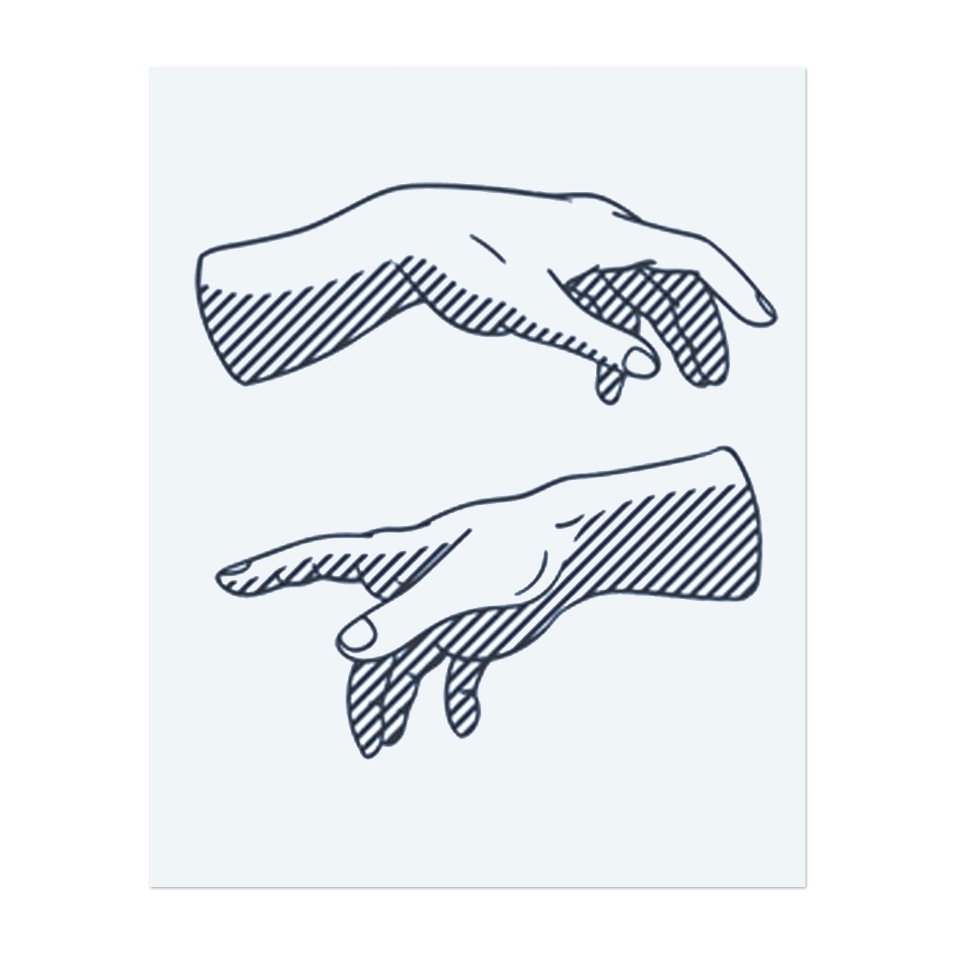 Due mani che si estendono in direzioni diverse. Rappresentano connessione, comunicazione o desiderio di interazione.