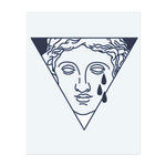 Un classico volto femminile in un triangolo con lacrime. Rappresenta il dolore, l'ispirazione artistica o la bellezza tragica. Un design sorprendente e simbolico.