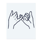 Due mani giunte in un giuramento con il mignolo. Rappresenta una promessa, una fiducia o un simbolo di amicizia.
