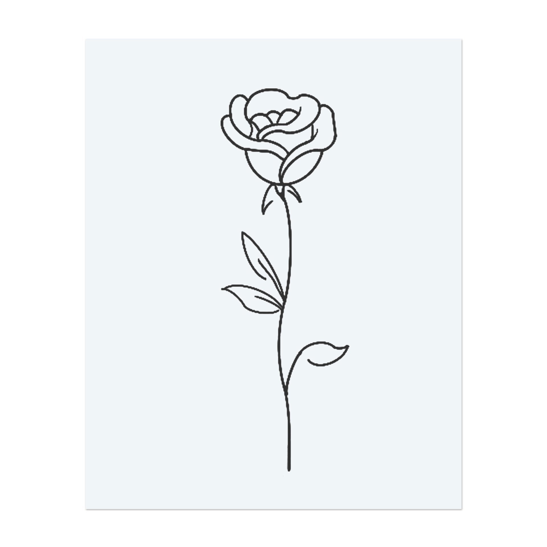 Una rosa delicata e verticale, con petali delicati e linee eleganti. Questo design semplice incarna amore, bellezza e grazia, ideale per un look romantico e senza tempo.