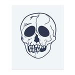 Un teschio classico con caratteristiche essenziali. Rappresenta la mortalità o un simbolo di ribellione. Un design semplice e iconico.