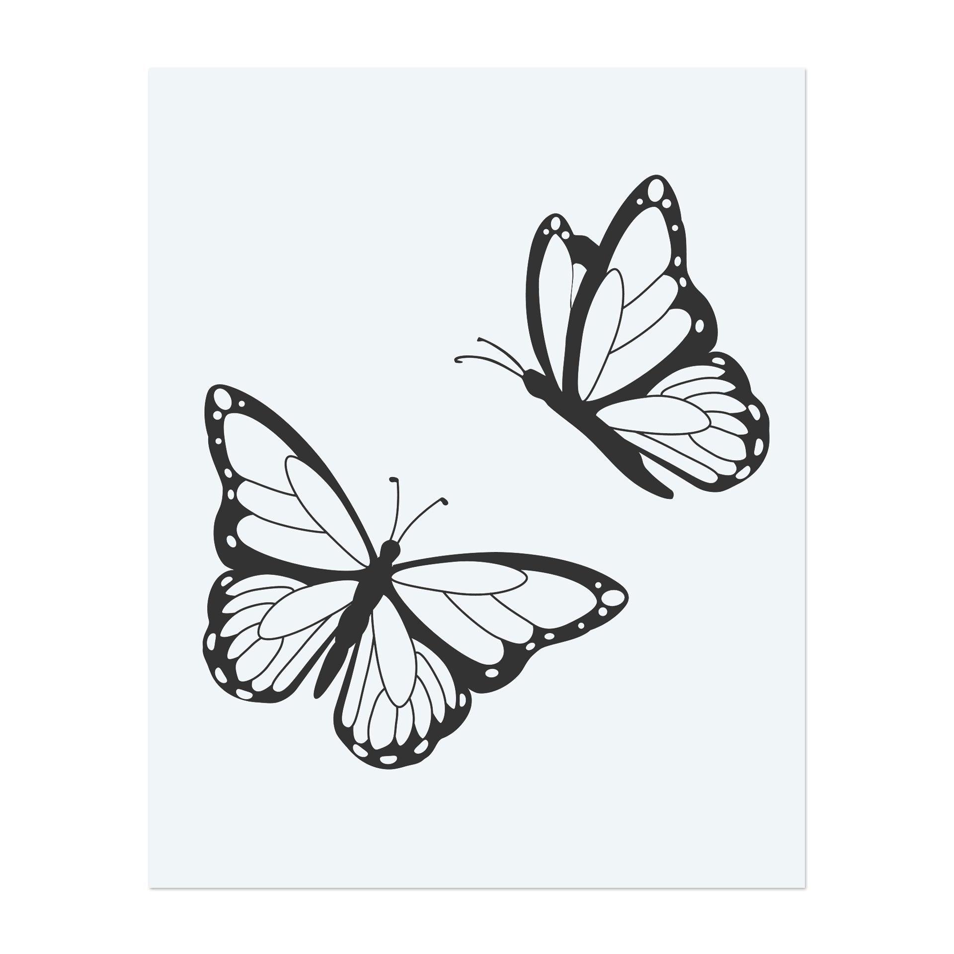 Due farfalle in movimento splendidamente dettagliate, con audaci contorni neri e delicati motivi sulle ali. Questa graziosa coppia simboleggia trasformazione, libertà e armonia; perfetta per un design ispirato alla natura.