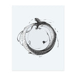 Questo straordinario tatuaggio raffigura un serpente dettagliato che si divora la coda, formando un cerchio perfetto. Questo disegno simboleggia l'infinito, la rinascita e la natura ciclica dell'esistenza, combinando misticismo antico, eleganza moderna e linee sorprendenti.