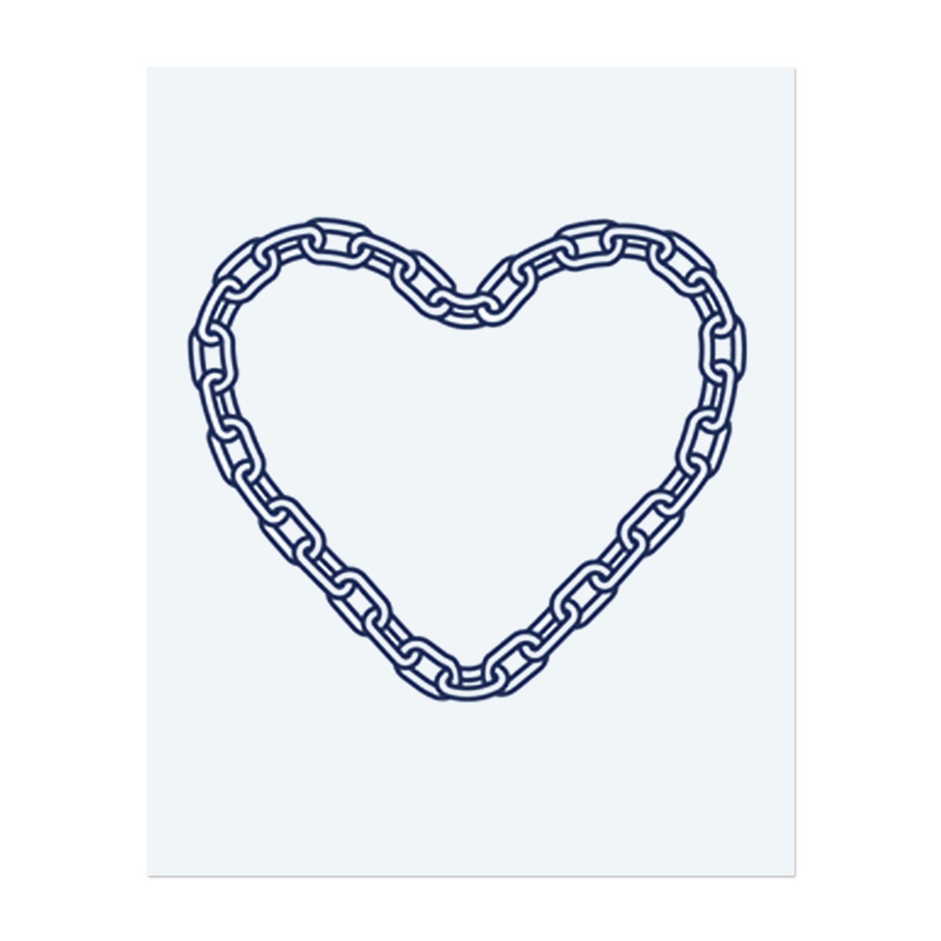 Un cuore formato da una catena. Rappresenta l'amore indistruttibile, un legame o una connessione forte che esiste.