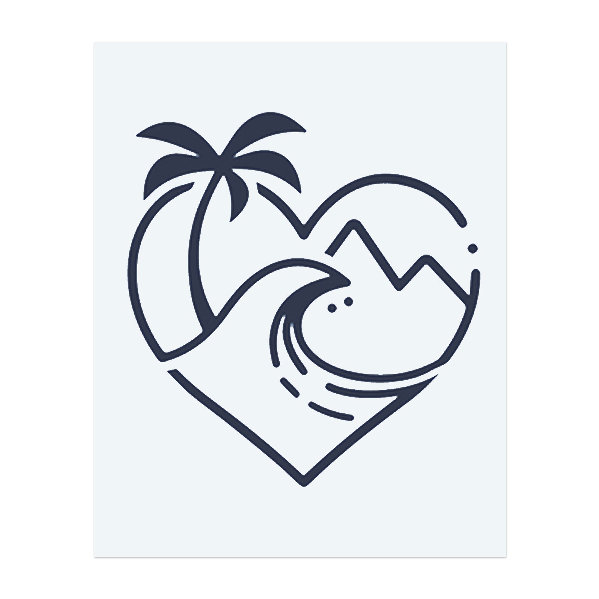 Un cuore formato da un'onda, montagne e una palma simboleggia l'amore per la natura, l'avventura e la tranquillità. Questo tatuaggio rappresenta il legame sereno ma emozionante con il mare e la bellezza della vita isolana.