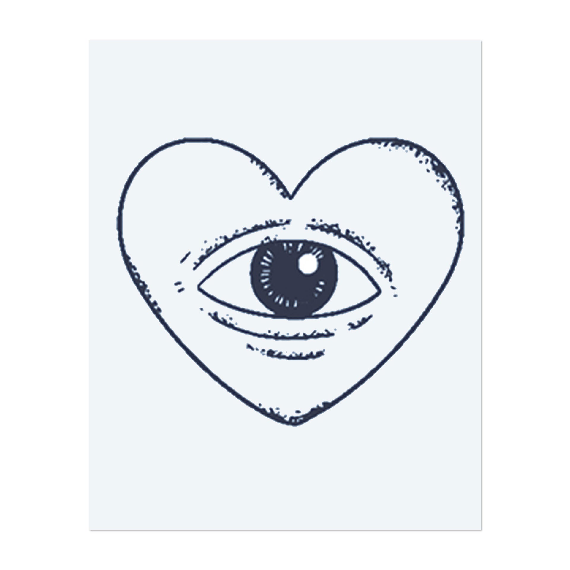 Un cuore con un occhio al centro. Rappresenta l'amore, la consapevolezza o un cuore risvegliato. Un design unico e simbolico con un mix di elementi classici e surreali.