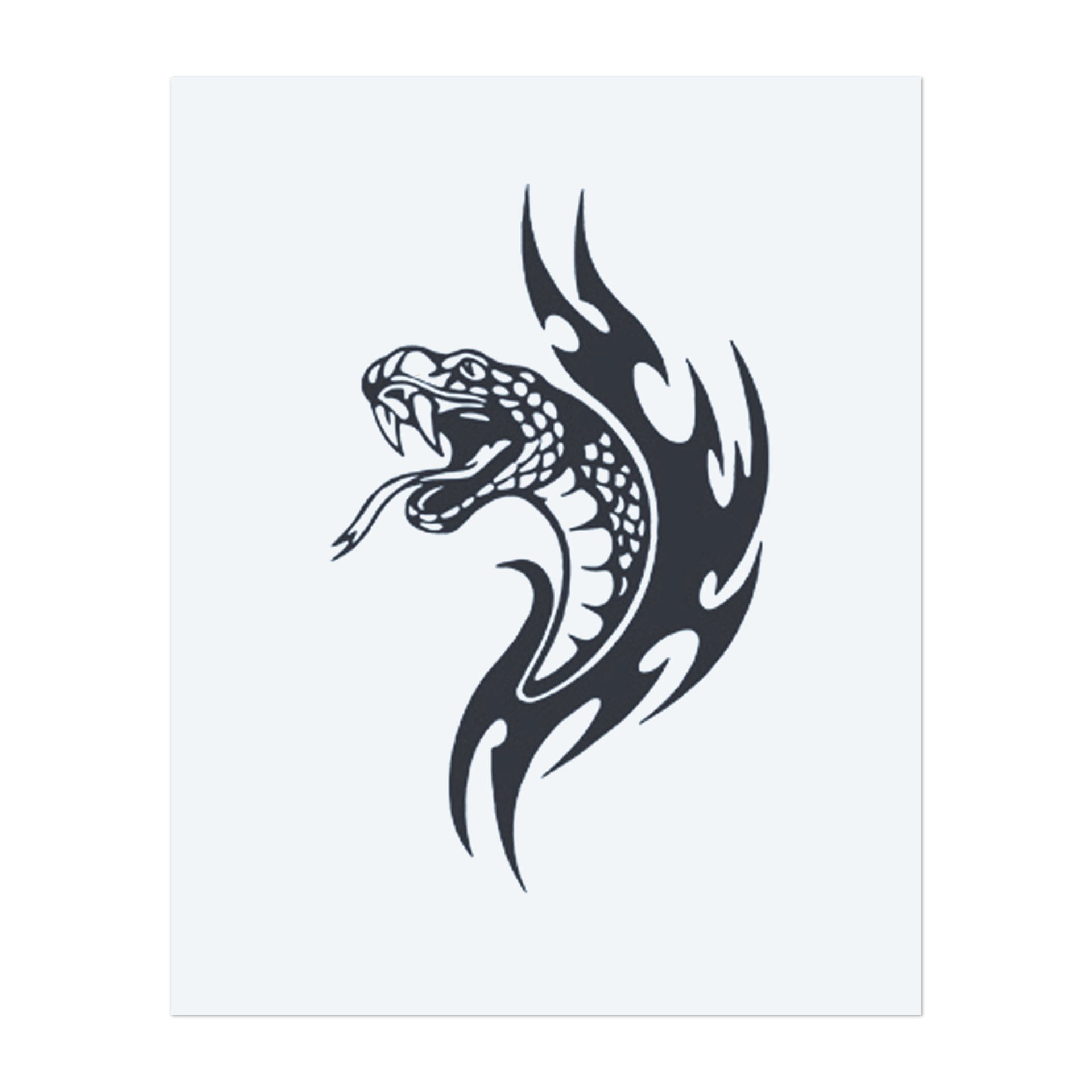 Un serpente che emerge dalle fiamme, leccandosi la lingua e mostrando i denti. Questo tatuaggio rappresenta il pericolo, la trasformazione e il potere selvaggio, perfetto per chi abbraccia la forza e l'intensità per superare gli ostacoli.