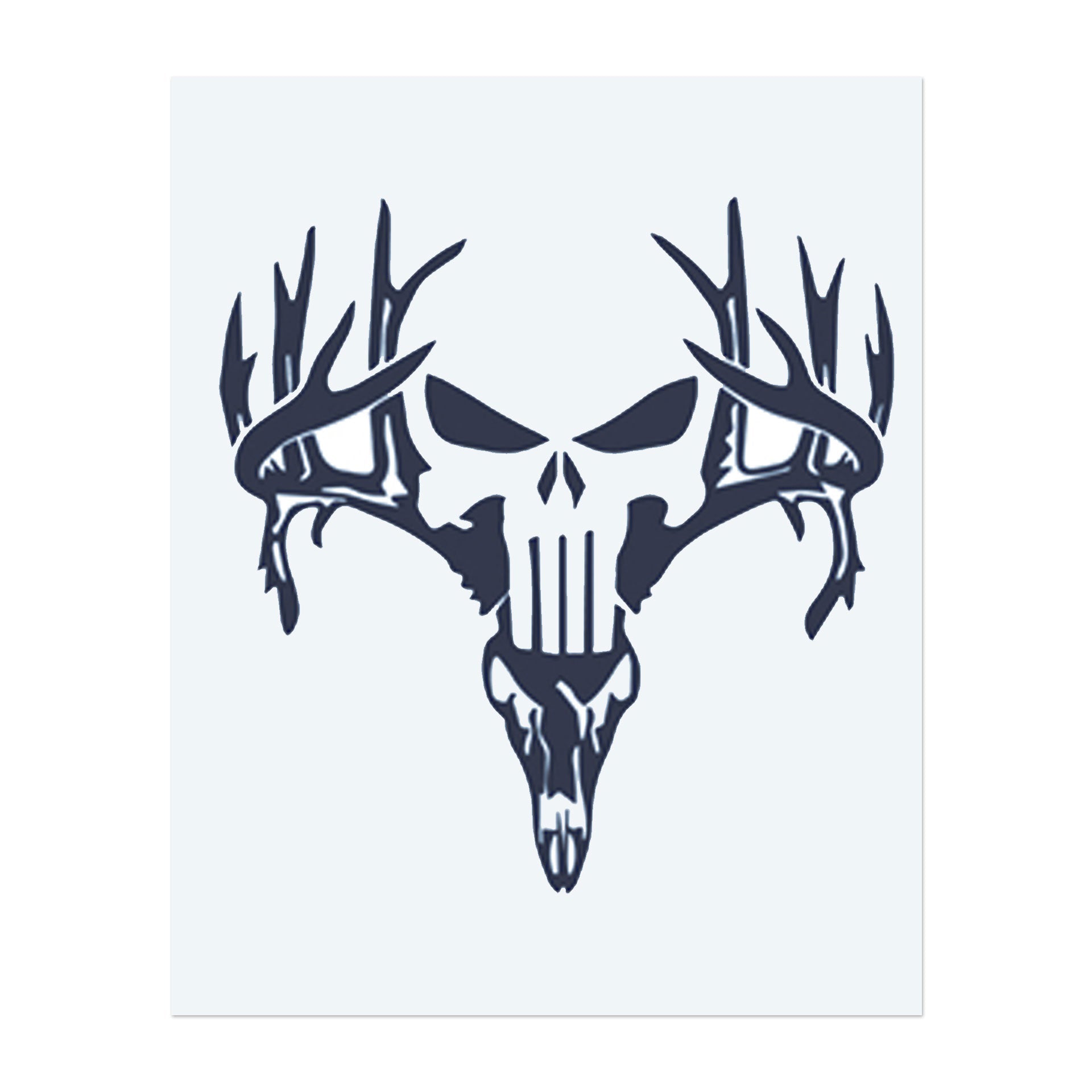 Un teschio con corna, che rappresenta la morte e la natura selvaggia, con un tocco di forza e resilienza.