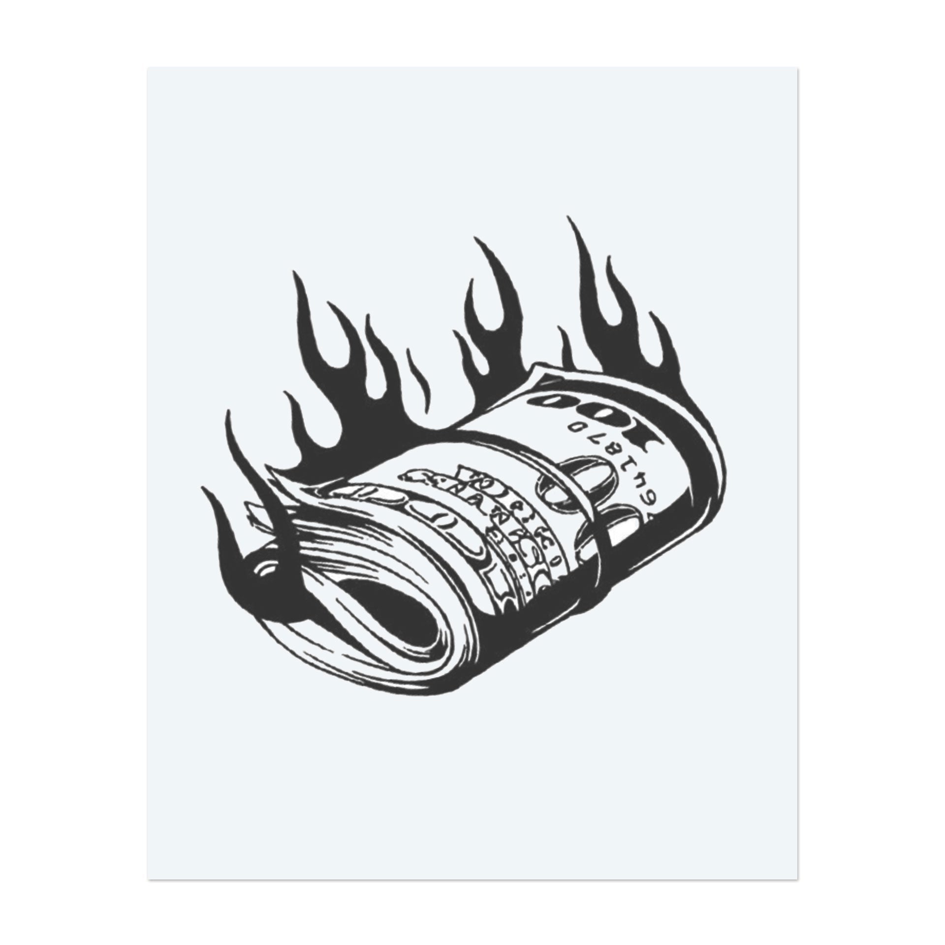 Questo sorprendente tatuaggio raffigura una pila di banconote da cento dollari strettamente stipate, avvolte da fiamme stilizzate. Rappresenta la transitorietà della ricchezza materiale e simboleggia il rischio finanziario, gli eccessi e il fascino autodistruttivo della ricerca della felicità a qualsiasi costo.