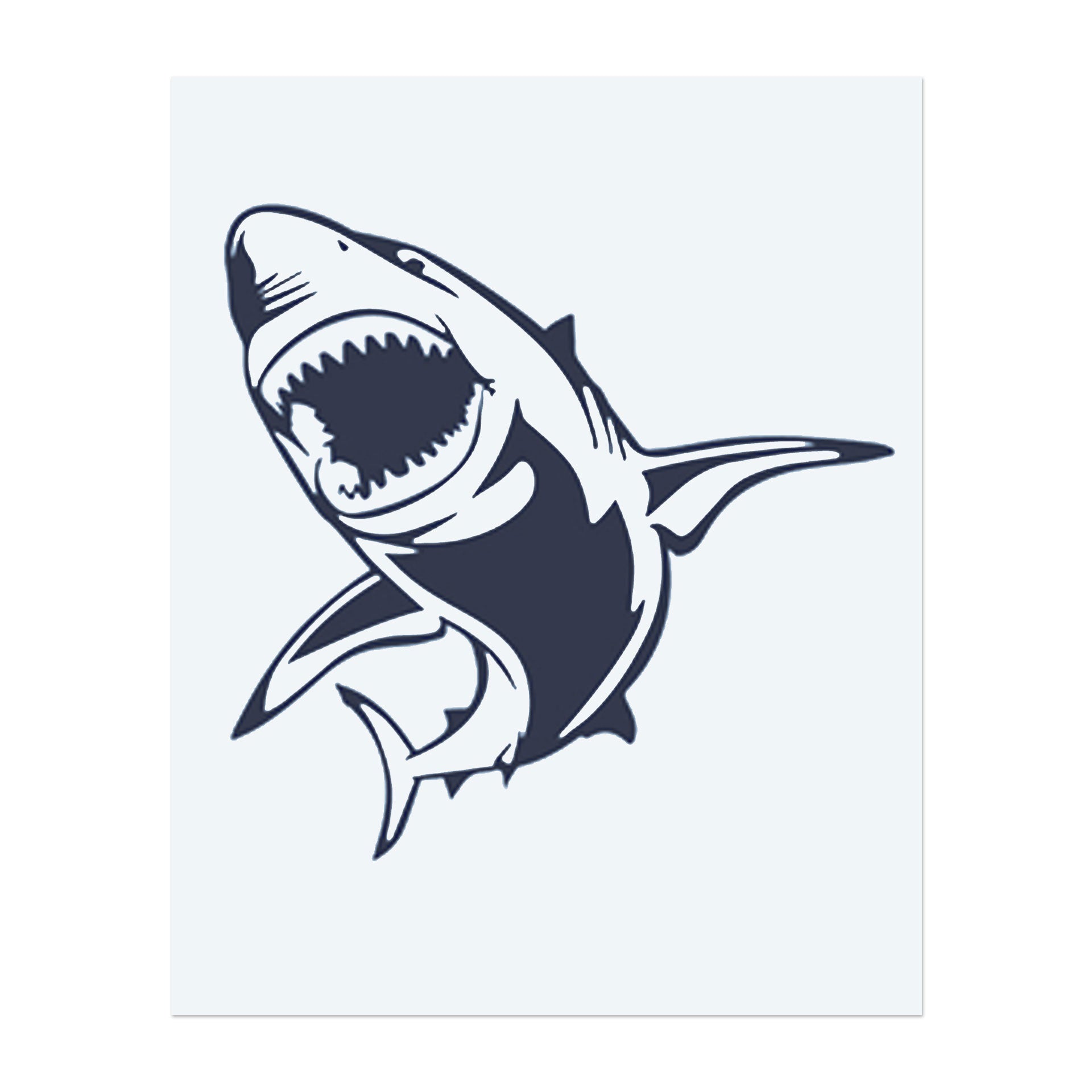 Uno squalo con la bocca spalancata e i denti visibili. Simboleggia il potere, la ferocia o il legame con l'oceano.